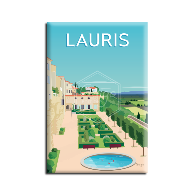 Magnet illustré de Lauris et ses magnifiques jardins du château. Découvrez nos magnets uniques : le cadeau parfait pour toutes les occasions ! Toutes les illustrations sont dessinées par l'artiste Guigo.
