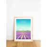Affiche illustrée des Lavandes du Ventoux, s'étendant au pied du Géant de la Provence. Découvrez nos affiches uniques : le cadeau parfait pour toutes les occasions ! Toutes les illustrations sont dessinées par l'artiste Guigo.